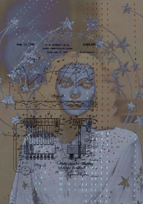 Aura Satz, Impulsive Synchronisation, 2013 The starting point for Impulsive Synchronisation is a 'Secret Communication System' patented during World War II by Hollywood star Hedy Lamarr and American composer George Antheil. This invention of 'frequency hopping' was designed to protect radio-controlled torpedoes from enemy disruption by distributing the signal over many frequencies and synchronising the transmitter and receiver in rapidly changing patterns. The idea, which drew in part on Antheil's unsuccessful attempt to synchronise 16 pianolas in his 1924 avant-garde masterpiece 'Ballet Mecanique', suggested the use of 88 frequencies (the number of keys on a piano), and the use of perforated paper rolls to keep the frequency hops in sync with each other. This concept has since become the basis for today's spread-spectrum technology, widely used in wireless telephone and wi-fi technology.