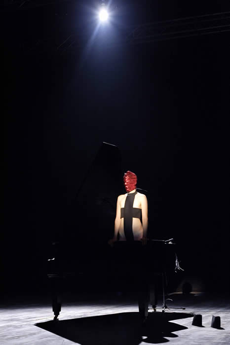Intrasonic folds inwards into the body's intra-uterine space by employing a theremin, and expands outwards, as the body extricates itself from the coffin-like cavity of a grand piano.