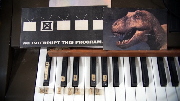 Aura Satz, 'Little Doorways to Paths Not Yet Taken', 2016 Following on from Satz's previous films on electronic music composers and inventors, this short film provides an intimate view of the studio of American composer Laurie Spiegel (b 1945). Known for her electronic-music compositions and her algorithmic composition software, the film also reveals all manner of music and technology paraphernalia, from music scores to DIY inventions and quirky toy collections. The soundtrack features electronic music composed by Spiegel, and Laurie's voiceover musing on electronic music and the compositional process.