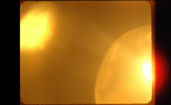 Aura Satz, 'Preemptive Listening (part 1: The Fork in the Road)', film still, 2018 'Preemptive Listening (part 1: The Fork in the Road)' is a short 16mm film which serves as part 1 of a larger research project on sonic obedience and disobedience through the trope of the siren. It posits the siren's loud glissando wail as a conditioned and learned signal, one that can potentially be perceptually and musically rewired. For this first chapter of the project, Lebanese trumpet improviser Mazen Kerbaj has composed a new siren sound using circular breathing, alongside the actor and activist Khalid Abdalla's account of the siren as the emblematic sound of resistance, oppression, and lost futures during the Arab Spring. Shot on 16mm, the film is literally driven by its soundtrack, as the voice becomes a beacon, activating emergency rotating lights.